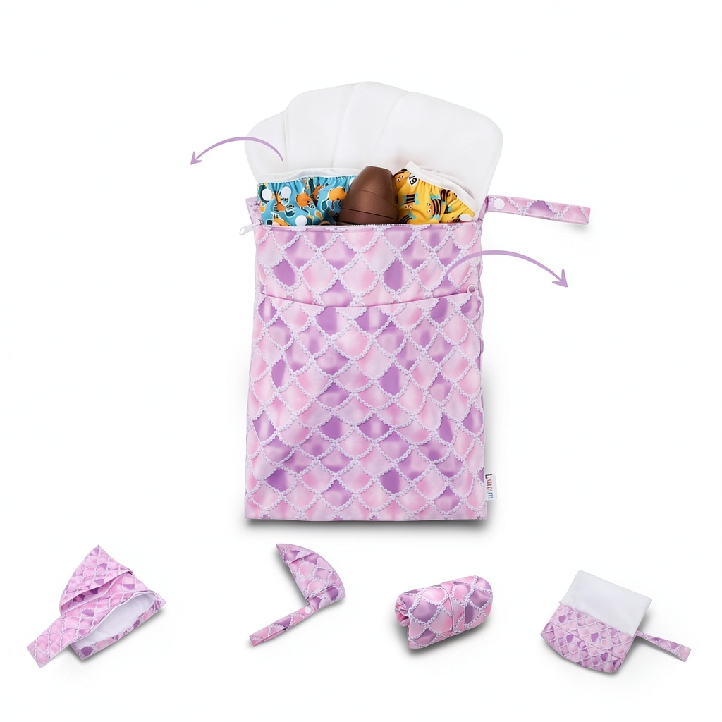 Yes, the Pearl Mermaid set includes a matching bag for storing essentials, adding to its convenience and style.