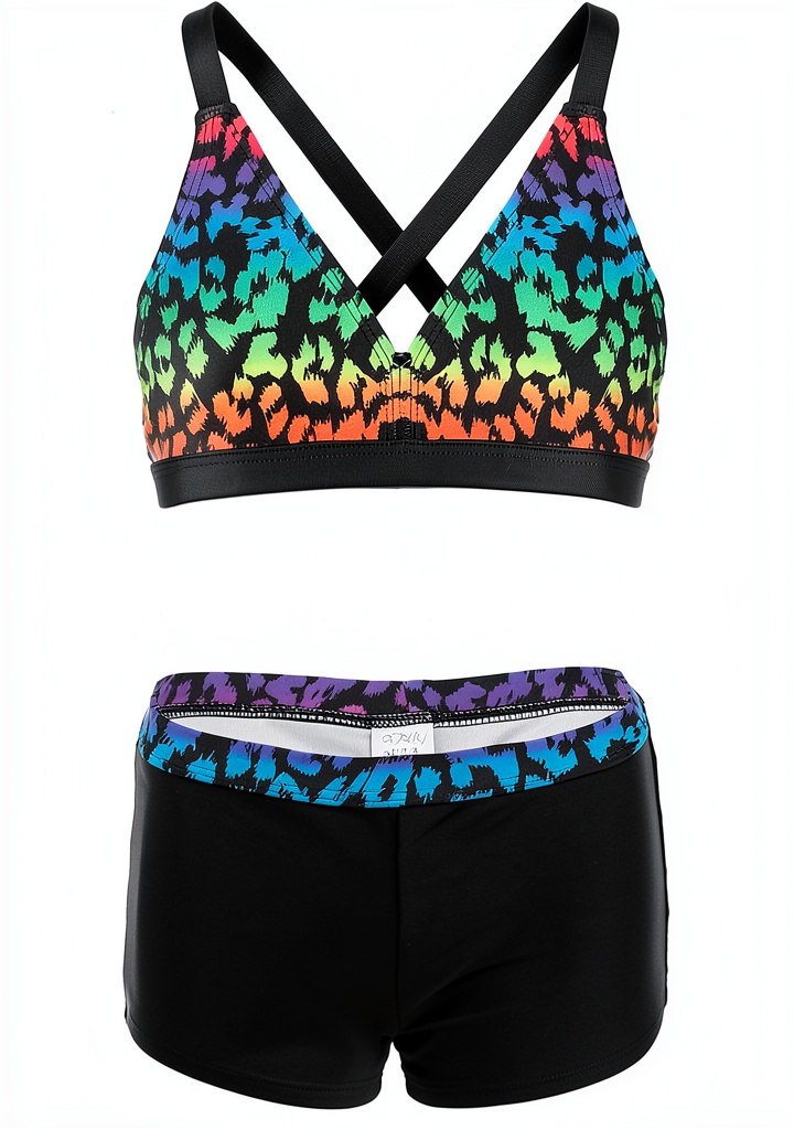 - Fashionable two-piece design with boyshort bottom and special top