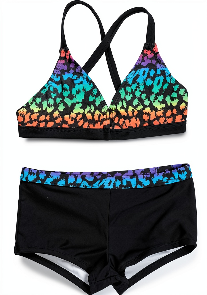 This girls’ two-piece swimsuit combines fashion and function with a black leopard print design, crafted from 84% polyester and 16% elastane for durability and stretch. It features a soft lining for breathability and fast drying, ensuring comfort during extended wear. The set includes a special design top and solid color boyshort bottom, rated UPF 50+ to provide maximum UV protection. Ideal for various aquatic activities, it suits girls aged 12-14 and is backed by a product warranty for added peace of mind.