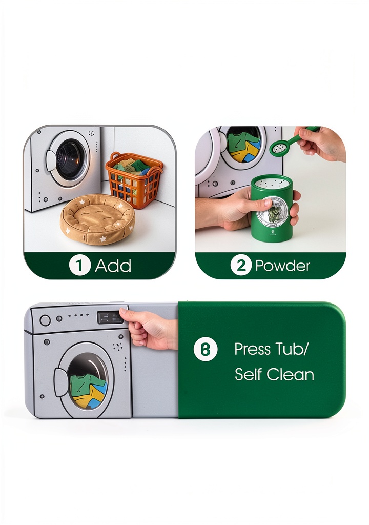Sprinkle the powder directly into the washing machine drum before adding clothes, and select the Tub/Self Clean mode with water heated to 194°F for optimal results.