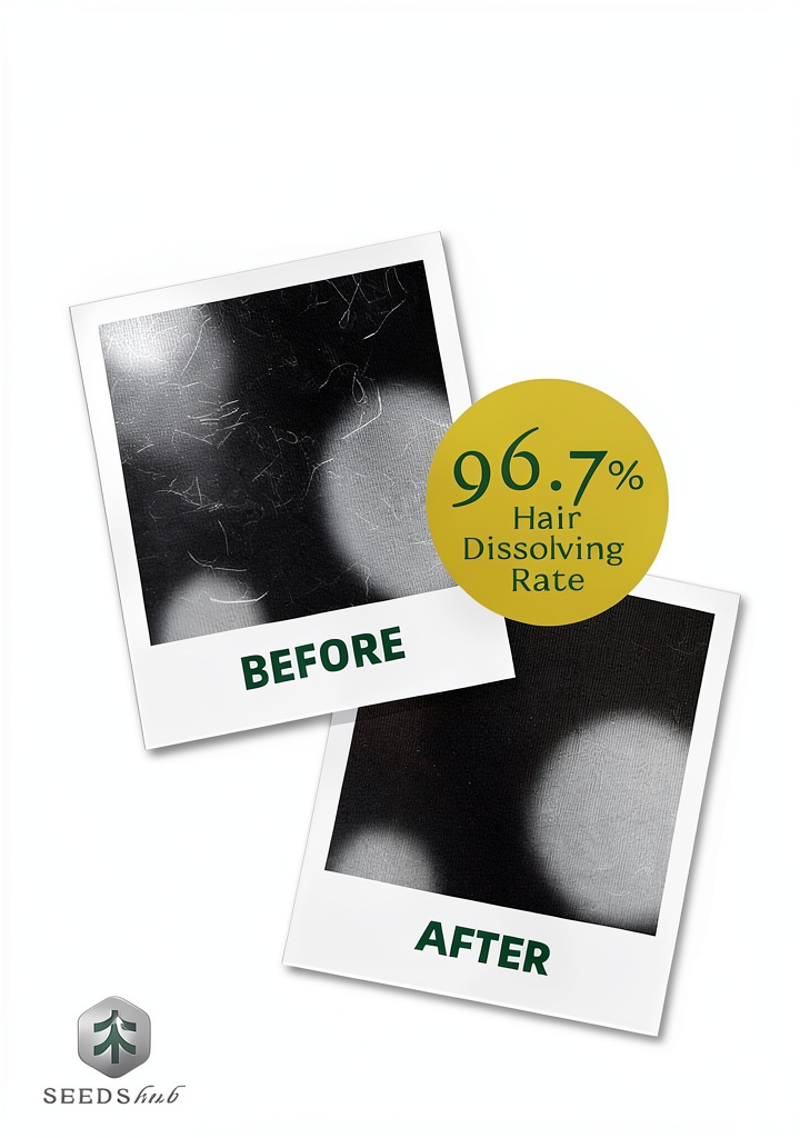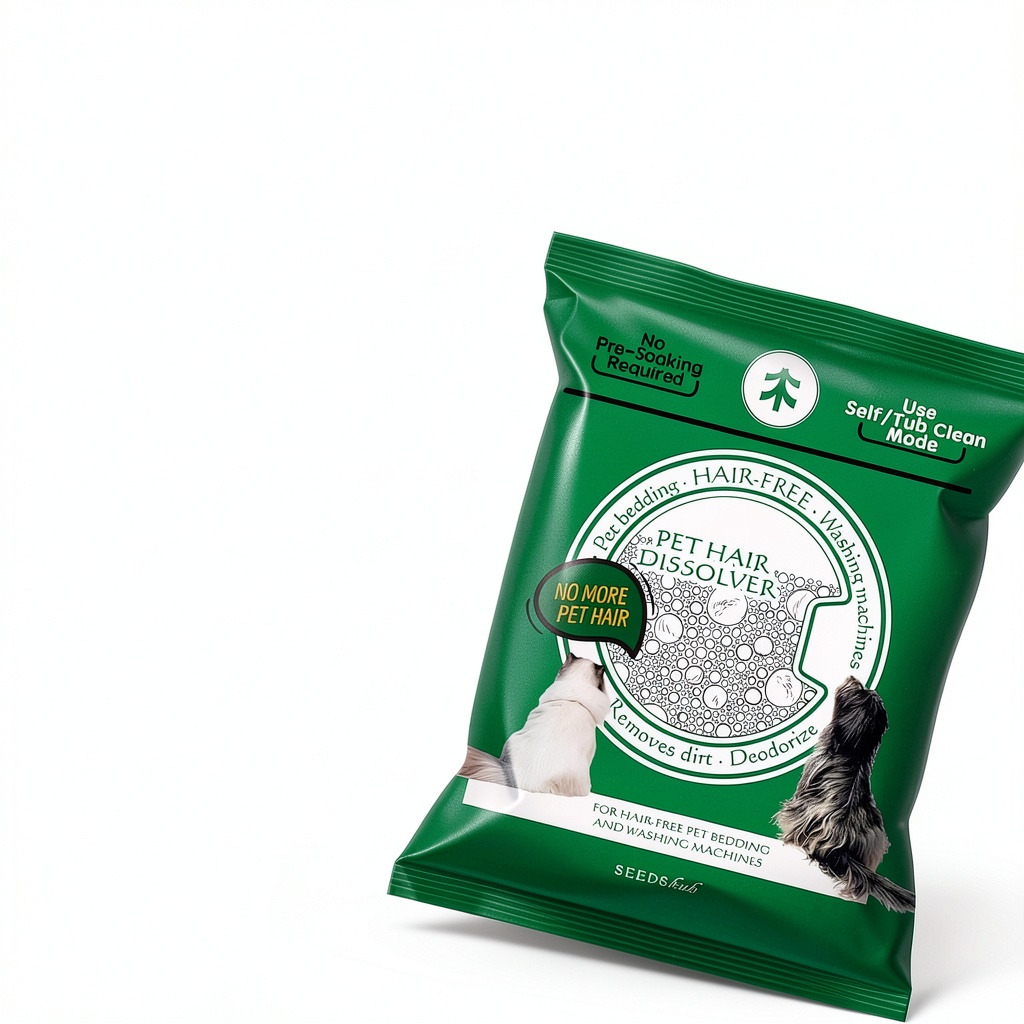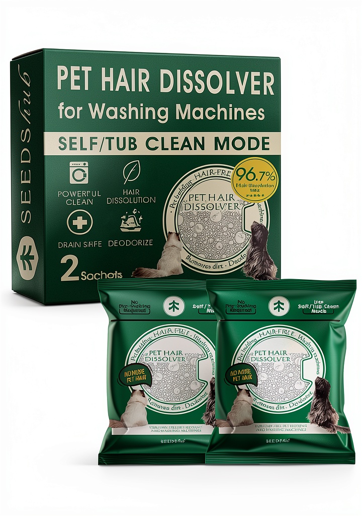 Seedshub Pet Hair Remover is a 5-in-1 action powder designed to dissolve up to 96.7% of pet hair in washing machines, while also removing scale, deodorizing, and preventing residue buildup. This product comes in convenient sachets, with each pack containing two sachets that provide up to two months of effective use when applied monthly. It is compatible with all washer types, including HE, top-load, and front-load machines, and requires no pre-soaking. The powder activates in high-heat cycles (185°F or higher) to break down stubborn hair and debris, making it a comprehensive solution for maintaining washer performance and cleanliness.